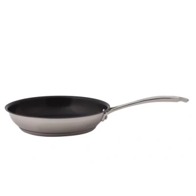 AmazonAll purpose 24cm Non Stick Frypan from the Swift Supreme Rang Quality Brushed 18/10 Stainless Steel Body with solid Cast Stainless Steel Riveted Handle Suitable for all Hob types under the Grill and in the Oven Dishwasher Safe with Lifetime Guarantee External Dimensions including Handles 43cm x 26cm x 7.5cm