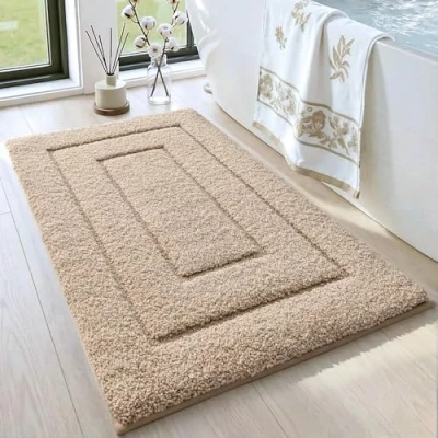 DEXI Bath Mat 60 x 90 cm, Non Slip Bathroom Machine Washable, Ultra Soft and Water Absorbent Rug for Bathroom, Tub Shower Beige