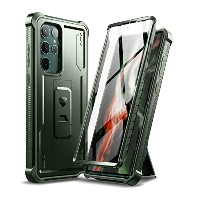 Dexnor Compatible with Samsung Galaxy S22 Ultra 5G Case Built in Screen Protector Military Grade 360 Full Body Shockproof Bumper Protection Cover Stand Army Green