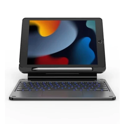 【ENHANCED COMPATIBILITY】The magic style keyboard case is compatible with iPad 9th Generation (2021, 10.2"), including models A2602, A2603, A2604, A2605; compatible with iPad 8th Generation (2020, 10.2"), including models A2270, A2428, A2429, A2430; compatible with iPad 7th Generation (2019, 10.2"), including models A2197, A2198, A2200. Note: iPad and Apple pencil NOT included. 【EASY-SET MAGNETIC STAND】The durable aluminum alloy hinge guarantees a sturdy magnetic connection, instantly transforming your tablet into a laptop. Enjoy a floating cantilever stand with customizable angles tailored for typing, reading, and immersive viewing. It's a perfect companion for travel, work, study and versatile daily use. 【PC CASE WITH PENCIL HOLDER】The detachable back case designed with a built-in pencil holder offers a sturdy protection to your iPad, as well as a quick access and secure storage to your Apple pencil. The case can also be set up in portrait mode for a better viewing experience. 【MULTI-TOUCH TRACKPAD】Revolutionize your iPad experience with our keyboard case featuring an ultra-precise and dependable smart trackpad. Seamlessly supporting multi-finger gestures, it opens up a new realm of control with actions like tap, pinch, scroll, swipe, and more. Navigate through tasks with unparalleled speed, whether you're editing documents, browsing the web, or crafting presentations. 【BACKLIT & RECHARGEABLE】Illuminate your typing with 7 solid color backlights and 3 adjustable brightness levels. The long-lasting 650mAh battery provides up to 200 hours of working time and 1200 hours of standby time on a single charge. Quickly rechargeable in 3.5 hours with the included USB-C cable. The auto wake/sleep function saves battery power and extends battery life.