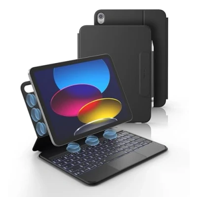 [Precision Fit] Engineered exclusively for iPad 10th Generation (10.9", 2022) (Models: A2696/A2757/A2777) and for iPad (A16) 11th Generation (11", 2025) (Models A3354, A3355, A3356). Double-check the "A" code on your device’s back before purchase. NOTE: DOES NOT fit iPad 9th/8th/7th Gen, iPad @@@LIlBbItPuwF9qAERum6VF+Q2HQ47fNGM@@@ 4th/5th Gen, iPad Air 11 inch and iPad Pro 11 inch (NOT for iPad models with 3 metal contacts on the back); iPad & Apple Pencil NOT included. [Ultra-light & Portable Design] Designed for on-the-go productivity, the ultra slim and thin keyboard case for iPad 11th/10th Generation combines powerful functionality with a travel-friendly design, weighing just 1.16 lbs. NOTE: It is NOT a Floating Cantilever Design and the iPad Screen WON'T be elevated. iPad sits right on the base on the keyboard. [Ultra-strong Magnetic Attachment] With large quantity of magnets embedded in the back cover and slot, your iPad will be securely and firmly attached to the keyboard case, providing a rock-solid support on your desk or lap. You will be assured to type on it even when you are holding it with a single hand. The ergonomic 120 degree viewing angle ensures a maximum comfort for study, work and entertainment. [The magnet won’t be working if your iPad model comes with 3 metal contacts on the back] [Keyboard Case with Multi-touch Trackpad] Enjoy smooth, and precise navigation with the built-in trackpad. It supports multi-finger gestures, giving you laptop-like controls on your iPad for editing documents, browsing the web, multitasking, and more. You can disable it to prevent palm rejection by pressing FN and spacebar. [Rechargeable and Long-lasting Battery] Stay powered through your longest work sessions with the 650mAh lithium polymer battery, offering up to 1200 hours of standby time, 200 hours of use without backlight and 8 hours of continuous working time with the brightest backlight on. When you need to catch up on your schedule at night, the brightness-adjustable white color backlight ensures effortless typing even in low lighting condition. [Laptop-like Typing] Type faster and more effortlessly with our perfectly spaced, responsive scissor-switch keys. The full row of shortcuts gives you instant access to the screen brightness, volume, and more, putting everything at your fingertips so you can get things done more efficiently without interruptions. [Keep everything safe and organized] This portable keyboard case protects your iPad from scratches, smudges, and daily wear and tear, while the built-in pencil holder keeps your Apple Pencil (not included) safe and easily accessible; When you're ready to go, just fold it up, and the magnetic clasp ensures it stays securely closed for easy carrying. [Upgraded power-saving design] Simply open the case to power on the keyboard and wake up your iPad; close it to turn everything off and let your iPad sleep—super smart and energy-efficient. The keyboard goes into sleep mode after 30 minutes of inactivity, and the backlight sleeps after 45 seconds of inactivity.