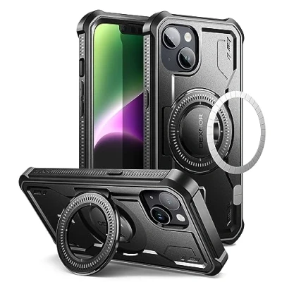 Dexnor for iPhone 13/14 Case Compatible MagSafe[Built in Screen Protector and Kickstand],Heavy Duty Military Grade Protection Shockproof Protective Cover Black