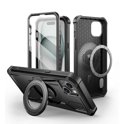Dexnor for iPhone 15 Plus/14 Plus Case Compatible MagSafe[Built in Screen Protector and Kickstand],Heavy Duty Military Grade Protection Shockproof Protective Cover Black