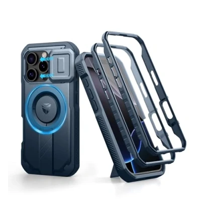 Pay attention to the Compatibility: This adventure-proof case is specifically designed for iPhone 16 Pro, offering precise cutouts for seamless access to all buttons and ports. Please check your phone model carefully before making the purchase. Mighty Magnetic power: With a magnetic hold of up to 1,400g, this rugged case keeps your phone securely attached to all Magnetic accessories. Whether it's a wireless charger or a car mount, it ensures your phone stays put and safe in any situation. Smooth slide camera cover: Designed with a sleek, easy-to-operate camera cover, this shockproof case not only offers exceptional protection for your camera lens from potential scratches and damage but also ensures privacy for those around you. Adjustable metal kickstand: Made from superior aluminum alloy, the adjustable stand is incredibly sturdy and long-lasting. It holds your phone securely in both landscape and portrait modes, ensuring great stability and convenience for hands-free viewing. Military-grade protection: Engineered with shock-absorbent TPU bumpers and a robust PC back, this bumper case safeguards your phone against drops and impacts even on the toughest trails, offering unparalleled peace of mind during outdoor adventures.
