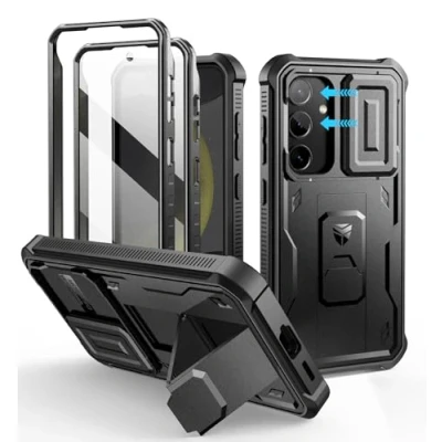 【Designed for Samsung Galaxy S24 only】. This rugged case comes with precise cutouts for easy access to every port, button, and other functions, and it supports wireless charging and wireless PowerShare. To avoid any compatibility issues, please check your phone model carefully before making the purchase. 【Drop your worries】. With a dust-proof slide camera cover and 10ft military-grade protection, there's nothing to worry about even if you get your phone dropped on the most rugged trail. This bumper case will keep it 100% protected and offer you a carefree experience during hiking, camping, fishing, or any outdoor adventure. 【2 ways to armor up the screen】. One front frame comes with a responsive, scratch-proof PET screen protector (works with touch @@@Iixdc7+H+W0KIfvSh4KgHRj3b1cpODnE@@@, too). Or, if you prefer using your own screen protector, pop it into the second front frame. With these choices and the added protection of raised edges, keeping your screen safe just becomes a breeze. 【A kickstand, also a ring holder】. Prop up the kickstand and enjoy your TikTok time in portrait mode or binge-watch your favorite shows in landscape mode. If you're worried about your phone slipping while snapping pics outdoors, just slide one of your fingers through the stand for a secure one-handed grip. 【Adventure-ready durability and portability】. Despite being super durable, tough, and protective, this full-body rugged case is still light and portable. Take it along wherever you go, it'll shield your phone from every possible angle and allow more possibilities for you to experience every adventure.