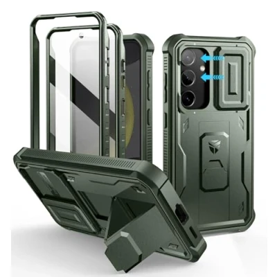 Dexnor for Samsung Galaxy S24 Case with Built in Slide Camera Cover & Screen Protector Kickstand, Heavy Duty Shockproof Rugged Full Body Bumper Protective Green