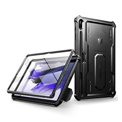 Dexnor for Samsung Galaxy Tab S7 / S8 S7+ Plus S8+ FE Case, [Built in Screen Protector and Kickstand] Heavy Duty Military Grade Protection Shockproof Protective Cover Black