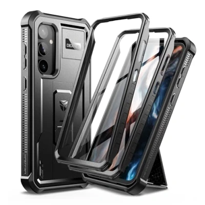 Dexnor Full Body Case for Samsung Galaxy S23 FE【Double front frame & Kickstand 】, Bumpershock Technology Drop Protection Rugged Phone Cover Shockproof Protective Bumper Black