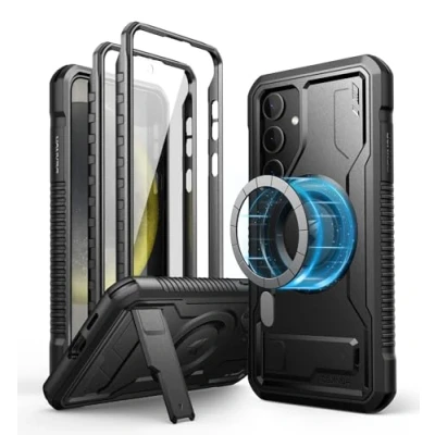 Compatibility: This magnetic case only provides a snug fit for Samsung Galaxy S24 Plus and is compatible with all wireless chargers and MagSafe accessories. Please check your phone model before making the purchase. Adjustable kickstand: The foldable stand is durable and sturdy, propping up your phone in landscape or portrait mode very stably. It can be adjusted by 90°, bringing you multiple angles to enjoy the video anytime, anywhere. Super strong magnetism: Built with 36pcs super strong N52 magnets, this bumper case provides a fast, precise alignment with wireless chargers and a secure attachment to magnetic car mounts, bringing you a hassle-free experience for both charging and navigation on the road. Military grade protection: Our full-body case is buit with shock-absorbing corners and raised edges defending the screen and camera. Whether you're stargazing in the park or hiking in the wilderness, it'll keep your phone fully protected from any bumps and tumbles on your adventures. 2 front frame for choice: The first frame is pre-installed with a responsive PET screen protector, designed to keep your screen safe from scratches, dust, and spills when you're on the go. If you prefer using your own screen procteor, we've got you covered with the second front frame.