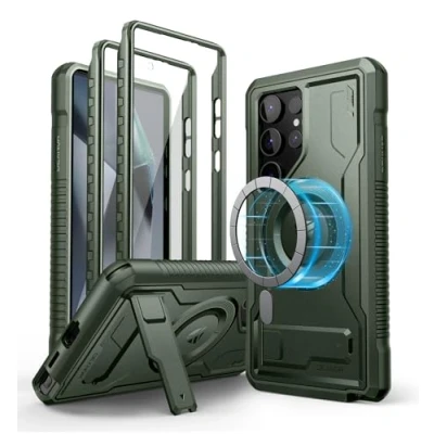 Dexnor Magnetic Case for Samsung Galaxy S24 Ultra with Adjustable Kickstand & 2 Front Frames Built in Screen Protector, MagSafe Compatible Rugged Shockproof Full body Protective Cover Green