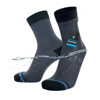 Waterproof for Everyday Wet Weather. Designed for regular use in rain, puddles, and damp conditions. Ideal for walking, commuting, dog walks, and everyday outdoor activity where keeping feet dry matters. Waterproof & Breathable Three-Layer Construction. Built with a durable outer knit, a waterproof breathable membrane, and a comfort inner layer to block water while allowing moisture from your feet to escape. Comfortable for Daily Wear. Lined with DexDri polypropylene yarn that absorbs virtually no moisture, helping keep feet comfortable during prolonged wear without the clammy feel of traditional waterproof footwear. Secure Performance Fit. Waterproof construction has less stretch than standard socks, creating a close, supportive fit. If you’re between sizes or prefer a more relaxed feel, we recommend sizing up. Trusted DexShell Quality. Specialist waterproof-sock manufacturer since 2010, with over 3 million pairs sold worldwide. Designed for real conditions, not occasional novelty use.