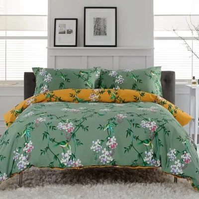 Deyongs Bird Garden King Duvet Set Sage and Gold