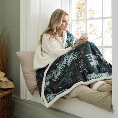 Deyongs Sherpa Peacocks 140x180cm Teal Heated Throw
