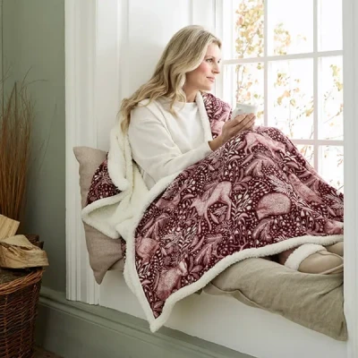 Amazon[WOODLAND FOLK DESIGN] – Deer and forest print on a wine red background [HEATED FUNCTION] – Adjustable warmth for cold evenings [FLANNEL & SHERPA] – 220gsm printed face & 200gsm reverse [EASY CARE] – Machine washable and tumble dry safe [BRITISH DESIGN] – Crafted with heritage and style in Great Britain