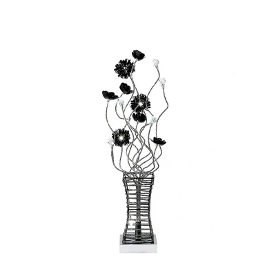 This beautiful table and floor lamp range is available in three colour finishes Silver, Black and Coffee Brown. Long Aluminium spirals lead up to elegant flowers and crystal spheres all placed in a vase shaped base. The products can be just as effective as an accessory or a functional lamp with its bright halogen lamps. All Items are supplied with G4 Lamps. Another collection of Quality products from Diyas Home.