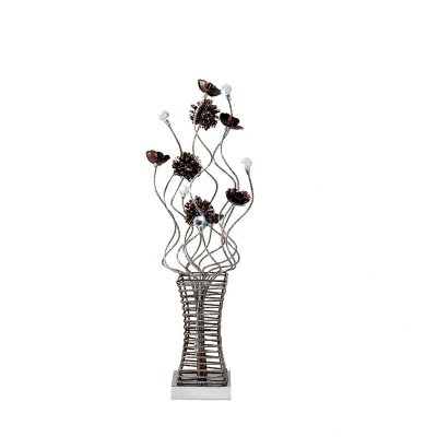 This beautiful table and floor lamp range is available in three colour finishes Silver, Black and Coffee Brown. Long Aluminium spirals lead up to elegant flowers and crystal spheres all placed in a vase shaped base. The products can be just as effective as an accessory or a functional lamp with its bright halogen lamps. All Items are supplied with G4 Lamps. Another collection of Quality products from Diyas Home.