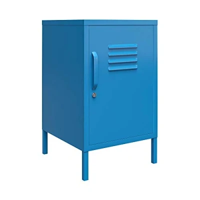 Made of powder-coated metal, the bright colour adds a fun twist to your living room collection. The metal can be cleaned with a damp cloth so you can easily clean spills Add storage and style to your living room with the Novogratz Cache Metal Locker End Table The 2 shelves behind the locker style door are ideal for storing away essentials. A wall anchor kit is included to prevent tipping injuries.