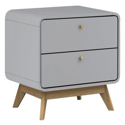 Sleek Scandinavian Design: Experience the beauty of the 'Skandi-Style' Cassie Range, with its curvy, contemporary design and oak-colored base, perfect for adding a touch of modern elegance to your bedroom Spacious Storage: This nightstand boasts 2 drawers, providing ample space to store all your bedtime essentials, keeping your space clutter-free and organized Durable Construction: Built with engineered wood, this nightstand is both sturdy and long-lasting, ensuring that it can withstand daily use while maintaining its appearance Easy Assembly: The Loft24 Cassie Nightstand requires assembly, but with the provided assembly guide, the process is straightforward and stress-free, even for those who aren't DIY-savvy Versatile Style: This nightstand is available in many colors, allowing you to choose the one that best matches your bedroom decor, and its rectangular shape and furniture finish make it a stylish addition to any room