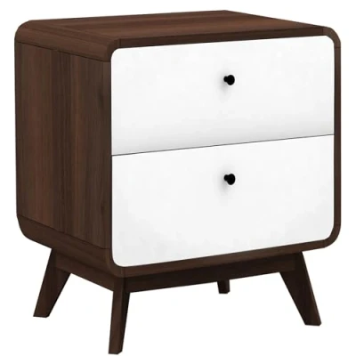 DHP Furniture Cassie End Table with 2 Drawers, Walnut Look White