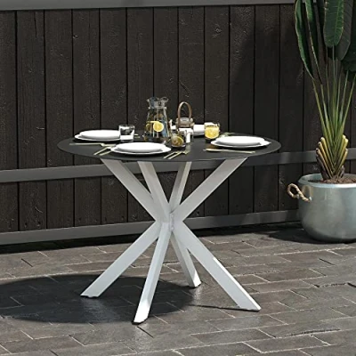 DHP Furniture Circi Outdoor, Dining Table, Glass Top, Black & White