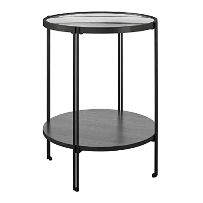 Complete your living room with the ultra-modern Queer Eye Wainwright Round End Table Made of laminated particleboard, the black oak woodgrain finish pairs with the sturdy metal frame and fluted glass tabletop for a gorgeous statement piece Keep your essentials within reach on the spacious tabletop The fluted glass tabletop look will give you a high-end look without breaking the budget