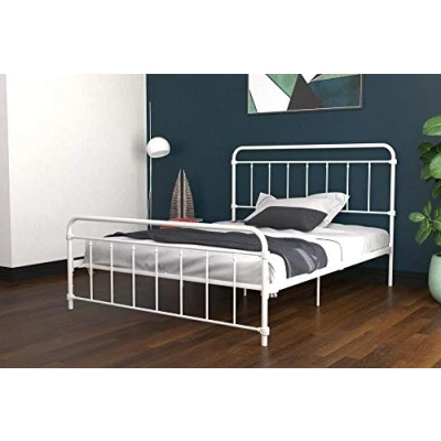 Vintage design with a sturdy metal frame that features simple, classic lines. Includes metal slats, a center metal rail and additional legs for extra support and comfort. Metal slat base allows air to pass freely beneath your bed, keeping your mattress fresher longer Includes metal slats, a center metal rail and additional legs for extra support and comfort. Metal slat base allows air to pass freely beneath your bed, keeping your mattress fresher longer Ships in one box and assembles quickly. Available in Twin, Full, Queen and King size. Offered in multiple colors. 1-year limited warranty. Product dimensions: 83.5"L x 63"W x 46"H. Weight limit: 500 lbs. Net weight: 53 lbs. Shipping dimensions: 68"L x 36"W x 5"H. Gross weight: 63 lbs.