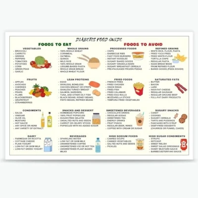 Diabetes Food List Diabetic Chart Poster Diet Sheet Painting Meal Plan Prints Grocery Nutrition Metal Tin Sign For Living Bedroom Decor 6x8in