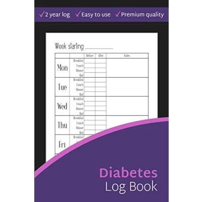 Diabetes Log Book: 2 Year Blood Sugar Level Recording Book, Simple Tracking Journal with NOTES, Breakfast, Lunch, Dinner, Bed Before & After