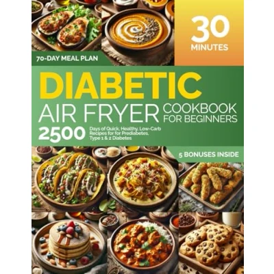 Diabetic Air Fryer Cookbook for Beginners: 2500 Days of Quick, Healthy, Low Carb Recipes Prediabetes, Type 1 & 2 Diabetes: Ready in 30 Minutes 70 Day Meal Plan