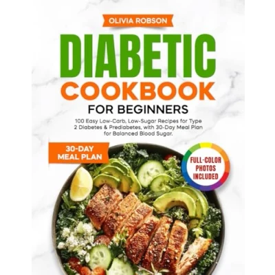 Diabetic Cookbook for Beginners: 100 Easy Low Carb, Sugar Recipes Type 2 Diabetes & Prediabetes, with 30 Day Meal Plan Balanced Blood Sugar.