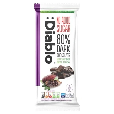 Diablo 80% Dark Chocolate Sweetened with Stevia No Added Sugar, Gluten Free Perfect for Gifting (Pack of 1)
