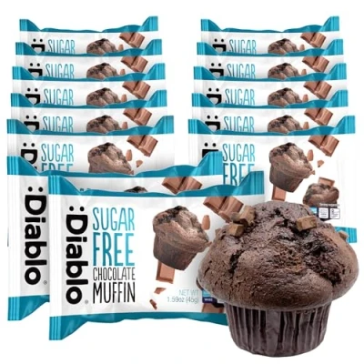 Diablo Chocolate, Chocolate Chip,Vanilla Cupcake Sugar Free Sweetened with Maltitol Perfect for Gifting Halal & Kosher Approved 45g Each (Chocolate, Pack of 12)