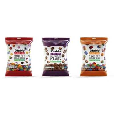 NO ADDED SUGAR: Sweetened with stevia, Diablo 3-in-1 Chocolate Treats offer a delightful variety of flavors including Milk Chocolate Peanuts, Peanut Milk Chocolate, and Coated Milk Buttons. Each piece delivers rich, smooth taste with no added sugars, perfect for those reducing sugar intake without compromising flavor. IDEAL FOR GIFTING: This assorted chocolate collection makes a thoughtful gift for birthdays, holidays, or festive hampers. Beautifully packed and easy to share, it’s an elegant choice for family, friends, or colleagues who enjoy sweet treats with mindful ingredients. VARIETY OF FLAVORS: Enjoy a trio of indulgent textures and tastes in every pack. From creamy milk chocolate to nutty peanut crunch and smooth coated buttons, this selection offers something for every craving, making snack time more exciting and enjoyable. PERFECT FOR ANY OCCASION: Whether you're enjoying them on your own, pairing them with a cup of coffee or tea, or using them as a topping for desserts, Diablo Chocolate Nuts Treats make every moment special. Made with premium ingredients, Diablo chocolate covered nuts offer a tasty treat that's perfect for snacking, topping desserts, or gifting. CONVENIENT & PORTABLE: Each 40-gram serving is individually packaged chocolate bag, making it easy to enjoy anytime, anywhere, whether you're on-the-go, at home, or sharing with friends and family.