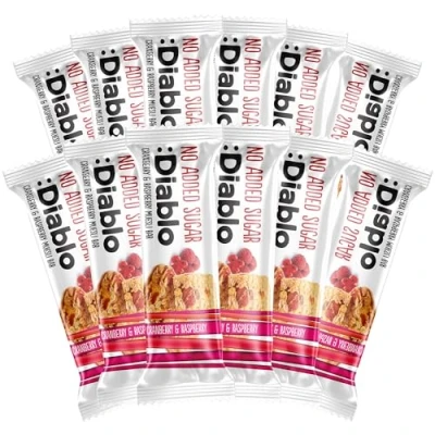 Diablo Cranberry & Raspberry Muesli Bar No Added Sugar Sweetened with Maltitol Breakfast Bars 30g (Pack Of 12)
