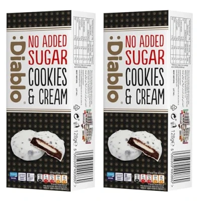 Diablo Dark Cookies with Milk Cream Filling Covered in White Glaze No Added Sugar Sweetened Maltitol Perfect for Gifting 128g (Pack Of 2)