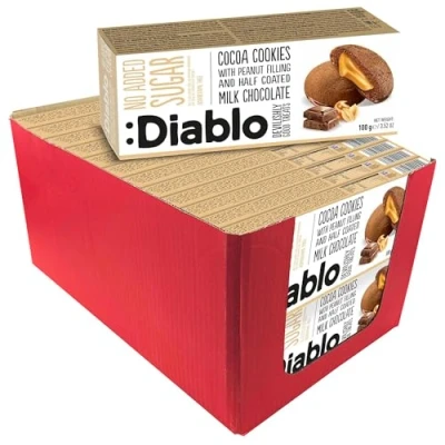 Diablo No Added Sugar Cocoa Cookies with Peanut Filling and Half Coated Milk Choclate 110g (Pack Of 26)