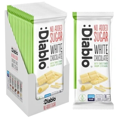 Diablo No Added Sugar White Chocolate Bar Sweetened with Stevia, Gluten Free, Ideal for Any Occasion, Birthdays, Valentines, or Gift Hampers, 75g (Pack of 15)
