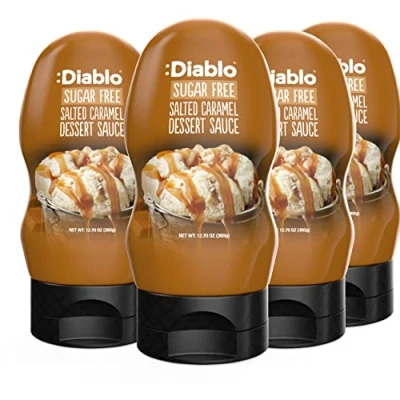 Diablo Sugar Free Dessert Sauce Gluten Syrup, Drizzle Sweetener, Keto Friendly Flavoring Topping, Perfect for Gifting, No Added Salted Caramel, 360g, 12.70oz 4 Packs