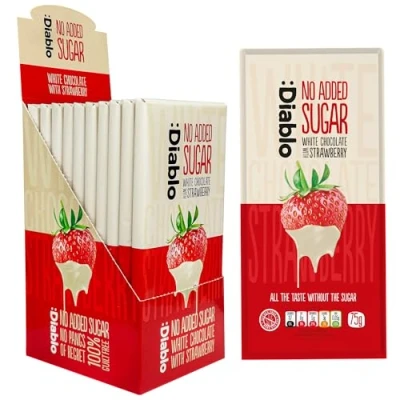 Diablo White Chocolate Bar with Strawberry No Added Sugar, Gluten Free Diabetic Friendly Hamper Available Perfect for Gifting 75g (Pack Of 10)