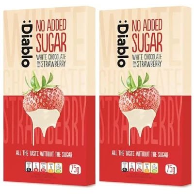 Diablo White Chocolate Bar with Strawberry No Added Sugar, Gluten Free Diabetic Friendly Hamper Available Perfect for Gifting 75g (Pack Of 2)
