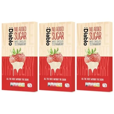 Diablo White Chocolate Bar with Strawberry No Added Sugar, Gluten Free Diabetic Friendly Hamper Available Perfect for Gifting 75g (Pack Of 3)