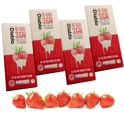 Diablo White Chocolate Bar with Strawberry No Added Sugar, Gluten Free Diabetic Friendly Hamper Available Perfect for Gifting 75g (Pack Of 4)