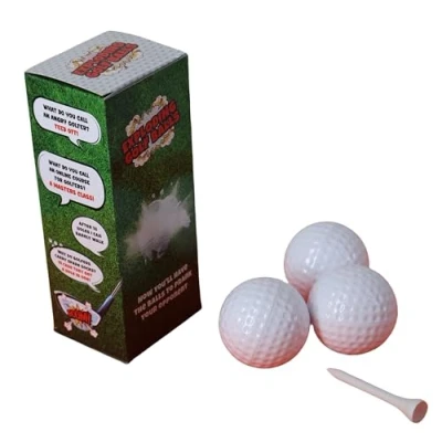 Introducing one of the most novel golf presents for men: Exploding Golf Balls! These golf balls are filled with starch powder, and explode on impact with the golf club! It's one of the most ultimate novelty gifts for men or prank for any golf lover, and will make a great Christmas gift for him. Arguably funnier than any personalised golf balls on the market! These novelty golf balls are a fantastic stocking filler for men who love a silly joke. He can use it on his golf buddies and have a good laugh at their expense! Hosting a golf competition? These funny golf balls make for great golf prizes, whether you're competing in crazy golf or a giant tournament.