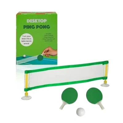 DESKTOP GAMES FOR OFFICE: The ultimate stress reliever and team-bonding challenge. Smash through meetings, deadlines, and rivalries with a mini table tennis face-off. TABLE TENNIS PING PONG SET: Everything you need to turn your desk into a ping pong arena - includes 2 mini paddles, 1 ball, and a suction cup net. Bring the bounce to break time! STOCKING FILLERS KIDS: A fun-sized game with full-sized laughs! This mini ping pong set is perfect for keeping little hands (and competitive streaks) busy over the festive holidays. TABLETOP GAMES: Whether it’s golf, basketball, football or ping pong, our range of mini desktop games brings big fun in small sizes—perfect for desks, tables, and bored minds alike. CHRISTMAS EVE BOX FILLERS FOR KIDS: Add a little pre-Christmas excitement with this mini ping pong set—festive fun that fits perfectly in a box, a stocking, or right on the kitchen table!