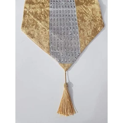 Diamante Velvet Table Runner Dining mat Tasselled Edges Decor 200cm (Gold, x 32cm)
