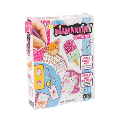 DIAMANTINY Deco Stickers is the new Creative Art activity to create DIY coloring stickers with crystal clear 3D gems. Through the "crystal art, color with numbers" technique, you can create many cute colored stickers, with "mosaic" effect, to be glued on different surfaces such as diaries, shoes, smartphones, etc. The set contains three adhesive sheets of 15x18 cm with 9 stickers each, equipped with adhesive base and color guide, 13 types of colored gems, a piece of wax, an applicator pen, a tray for gems. The gem stickers depict animals, unicorns, mermaids, ice cream and sweets. Deco Stickers is a very simple and relaxing activity that can help children develop hands-on, coordination and concentration skills. Recommended age: 6+, Manufacturer: Nice Group