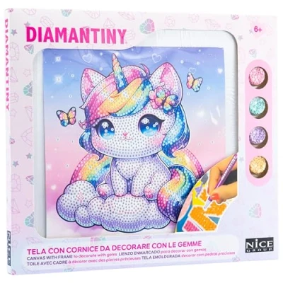DIAMANTINY KAWAII Crystal Art Craft DIY 3D Crystal Diamond Painting Craft Embossing, Colorful 3D Gemstones Kawaii Unicorn Baby Kitten TECHNIQUE: To decorate the cat-horn mosaic with butterflies and clouds you must use the "crystal art, color by numbers" technique, applying the gems to the numbers. The instruction sheet guides you through the application. FUNCTION: This activity is very simple and relaxing. Helps children and young people develop dexterity, coordination and concentration. Contents: the set contains 1 picture measuring 26 x 24 cm with adhesive base and colour guide, 2000+ coloured crystals, 1 binder tray, 1 pen with which to apply them and 1 wax. Original Diamantiny product by Nice Group. Recommended age: 6+, Manufacturer: Nice SRL