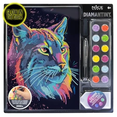 DIAMANTINY LEVEL UP: This is the crystal art activity to create DIY mosaics, embossed, with colorful 3D gemstones. Available in POP Lynx to gem version. TECHNIQUE: To decorate the Lynx Pop mosaic you must use the "crystal art, color by numbers" technique, applying the gems to the numbers. The instruction sheet guides you through the application. FUNCTION: This activity is very simple and relaxing. Helps children and young people develop dexterity, coordination and concentration. Contents: the set contains 1 picture measuring 21 x 29.5 cm with adhesive base and colour guide, 3000+ coloured crystals, 1 binder tray, 1 pen with which to apply them and 1 square of wax. Recommended age: 8+, Manufacturer: Nice SRL