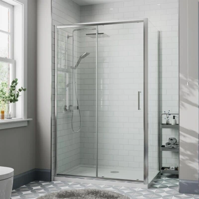 General description Elevate your daily routine with the Diamond Sliding Shower Enclosure, a premium shower solution designed to enhance your showering experience while adding a touch of elegance to your bathroom décor. Crafted with style and functionality in mind, this stylish sliding shower enclosure is the perfect addition to any bathroom. The space-saving design allows the sliding door to glide across the rail on rollers, creating a comfortable showering space without the need for the door to open into the room itself. Technical specifications Type: Sliding Door Enclosure Width: 1400mm Height: 1950mm Depth: 900mm Glass Thickness: 8mm Frame Style: Framed Frame Colour: Chrome Easy-clean Glass: Yes Reversible Door: Yes Glass Effect: Clear Door Opening Width: 572mm Installation Type: Corner Fixing (2 solid walls / 2 glass panels) Compatibility and accessories Included: 1x Diamond Sliding Shower Door 1400mm - 8mm Included: 1x Diamond Side Panel 900mm - 8mm Note: Shower tray and waste