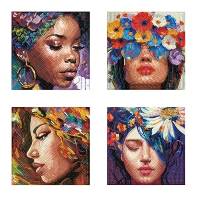 Create a sparkling masterpiece! Make four glittering diamond pictures with extra small sparkle stones with this DIAMOND DOTZ creative set. The craft set has everything ready to get started right away! Only the DIAMOND DOTZ Mini Dotz have an exclusive 15-facet cut and ensure a unique shimmer and intense glow. The specially developed adhesive technology ensures a perfect hold and the best quality. The particularly small facet stones make the full-surface motif sparkle and glitter wonderfully. In addition, the sturdy fabric with silk touch finish is tear-resistant and does not form wrinkles - ideal for framing as a luxurious wall decoration The set contains: original DIAMOND DOTZ mini bricks – packed according to colour including replacement stones, four printed motif templates with adhesive layer and protective film, two placement pens with comfort grip, sufficient wax, two sorting trays and instructions (English language not guaranteed). Original DIAMOND DOTZ Mini Dotz design: "Beauties" - DD26.001 with 12337 round stones. Motif size 5" x 5" Motif type: full. Difficulty level: medium. Recommended for ages 14 and up., Manufacturer: Diamond Dotz